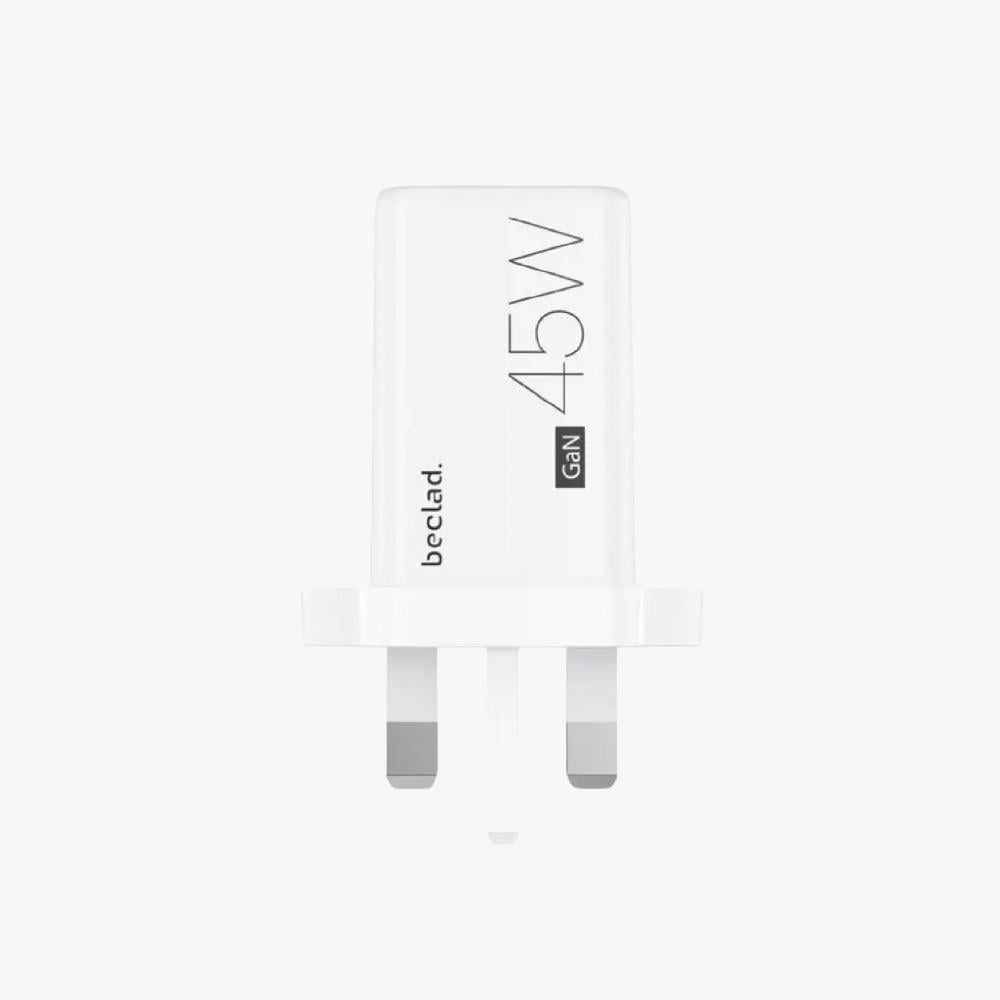 - سامسونج شاحن جداري تايب سي مدعوم بتقنية GaN اللي تخلي الشاحن صغير في الحجم وقوي في الأداء بشكل مدهش.